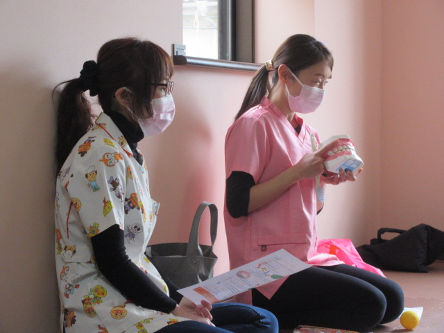 歯科講座 本日は小児歯科専門医で 立川もりのはいしゃさん院長の上原奈緒子先生と 歯科衛生士さんに来ていただきました。 」 乳幼児期の歯の知識、歯磨きのケアなど 優しく丁寧に教えていただき、お話に真剣に聞き入るお母様、 お子さんは皆、機嫌良く遊んで待っていられました♪ 歯の健康の為に「砂糖」よりも「果糖」 歯磨きケアは保護者もお子さんもお互いに 「機嫌のいい時」に行う、等 「たしかに!」「なるほど!」という反応を 皆さん、されていました(^^) お子さんの歯の健康をみんなで守っていきましょうね~!